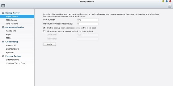 An interesting functionality is the ability to perform remote synchronisation to other NAS/servers and cloud-based backup with services such as Amazon S3, ElephantDrive and Symform.
