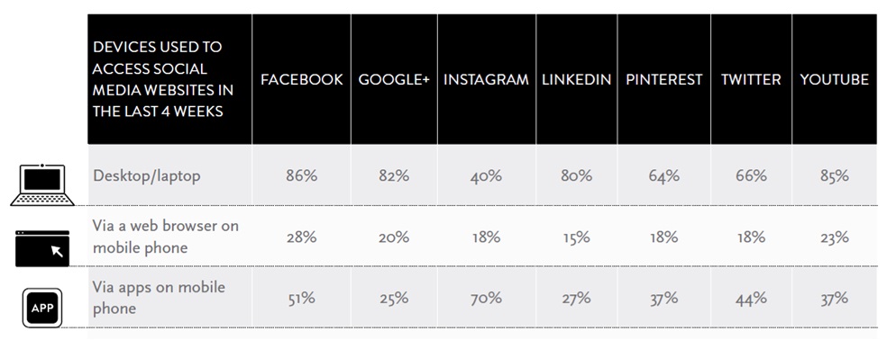 Almost nine in ten New Zealanders use social media, and three quarters use Facebook on a monthly basis. Desktop/laptops are still the most dominant device used for this activity, however mobile is increasingly prevalent – over half of Facebook visitors each month access via a smartphone app, 70% for Instagram and more than two in five for Twitter.
