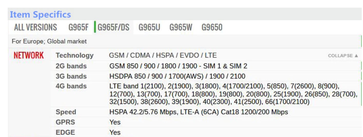 2G bands GSM 850 / 900 / 1800 / 1900 3G bands HSDPA 850 / 1900 / 2100 4G bands 1, 2, 3, 4, 5, 7, 8, 12, 20, 29, 30, 38, 39, 40, 41 Speed HSPA 42.2/5.76 Mbps, LTE-A (3CA) Cat9 450/50 Mbps