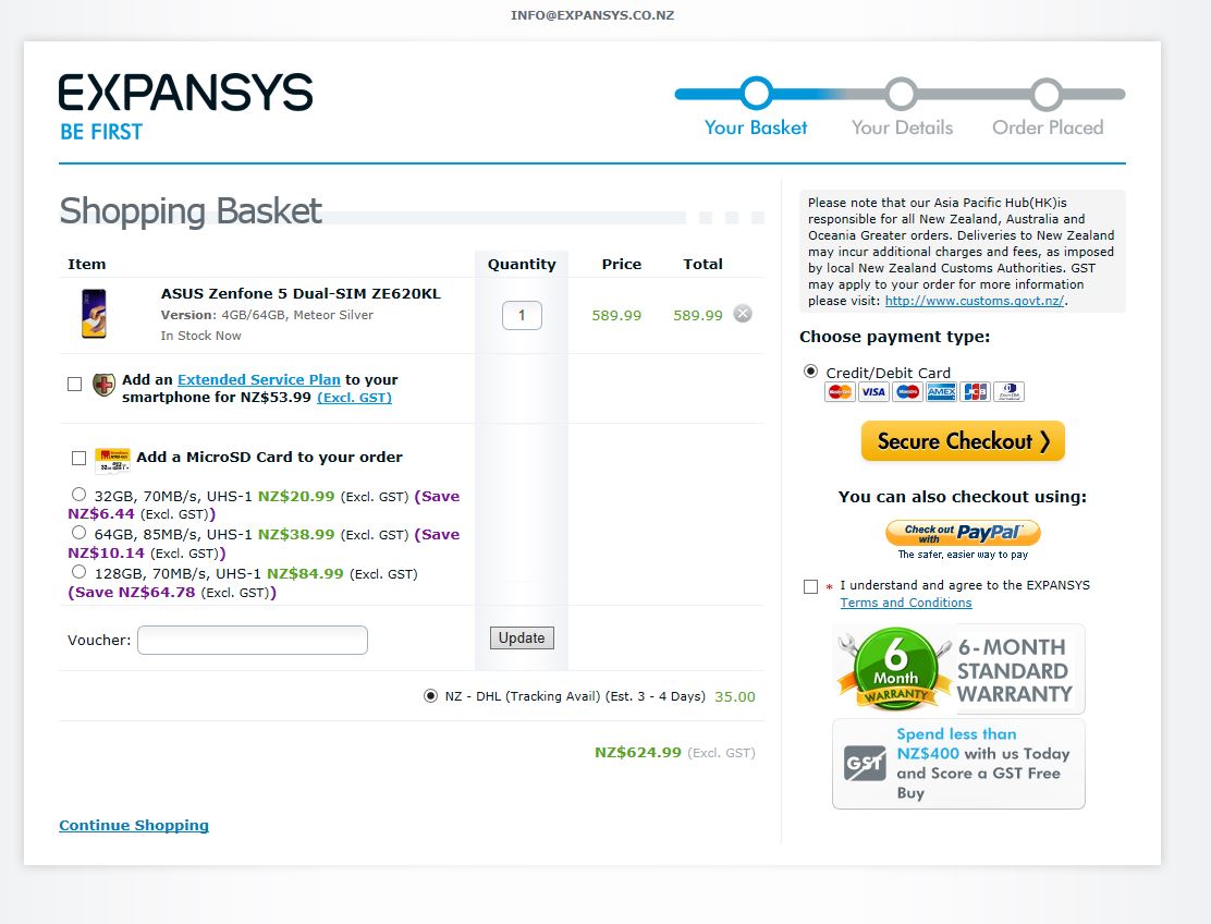 As for not purchasing from them again they're a great company with great support. It's your loss if you decide not to buy things from them again because there are plenty of genuinely dodgy sellers out there both in NZ and overseas selling phones into the NZ market. Expansys do make it clear GST and/or duty applies, unlike some retailers on Trademe and many other online retailers who do not.
