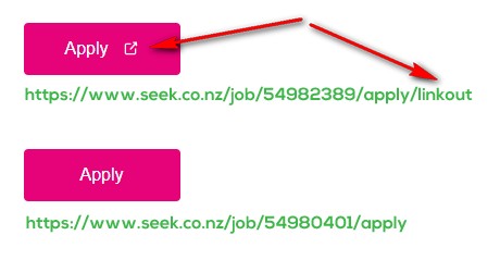 Does anyone know how to get this kind of "linkout" on the apply button? These are 2 example adverts I found on seek where the first one is the behaviour I want....