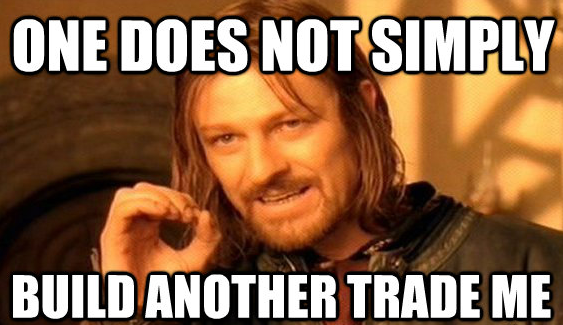 ajobbins:reven:im a developer and could fairly easily make a trademe like site, but it wouldnt succeed because i dont have the money to back it. you need a lot of money. saying "hey this is easy, i can do this in a week" is all well and good, but its more than just the programming.
