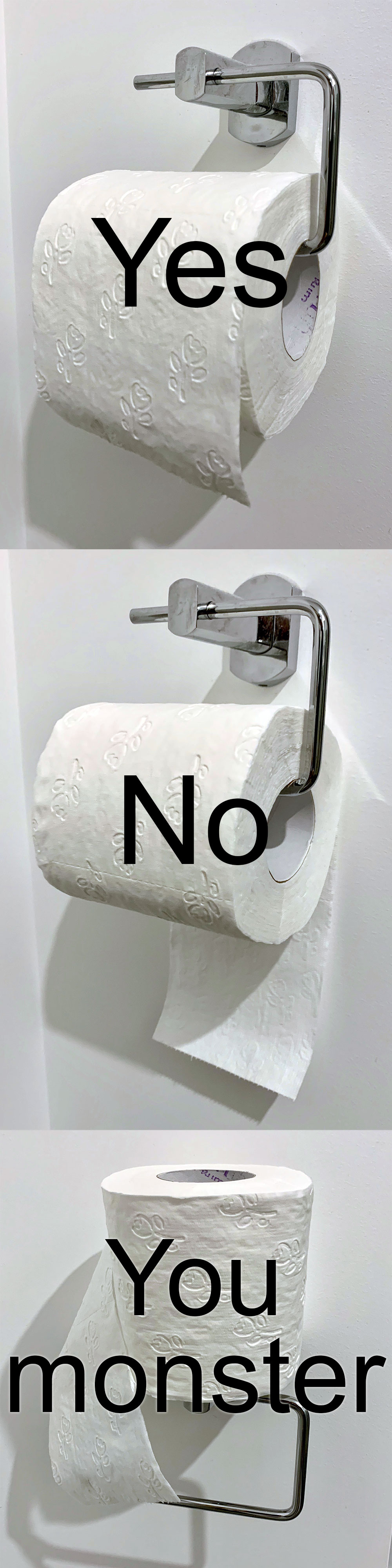 With the bar style of toilet roll holder, which way are they meant to go?