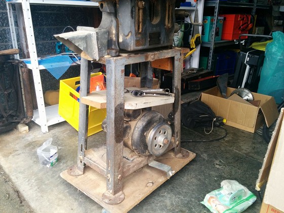 I couldn't get a belt the same size as the original, so even though it wasn't part of my original plan, I decided to build a new stand for it where I could tension the belt better: