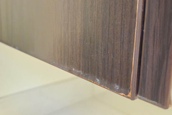 Depends on the grout and the trim looks like it has been installed tight to the vanity. Without cutting out the silicone you won't really know.