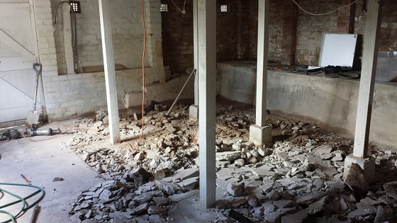 Roof open and some bricks removed: