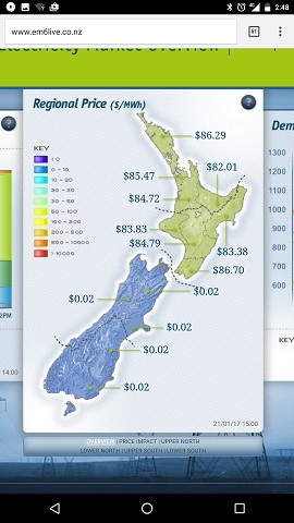 Prices are somewhat high in the North Island right now, exceedingly low in the south, and there doesn't appear to be any power going across the cook straight. I wonder if there's a cable failure, or planned maintenance?