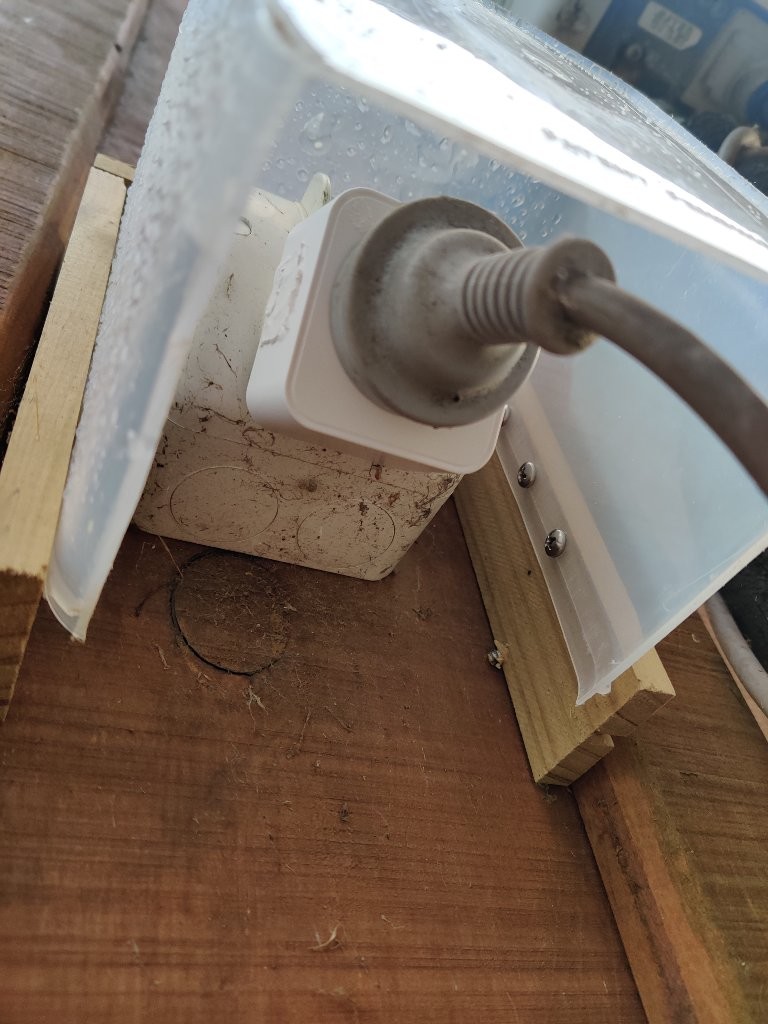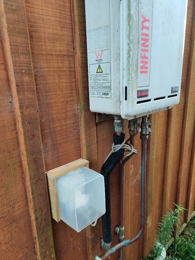 Yeah, I think you know where I'm going with this: it was a project to IP56-ify an Athom smart plug with Tasmota on the gas hot water. Used a bit of silicone to seal the button and underside, plus a rain cover over the top. Got it connected to Home Assistant with rules to switch off after drawing >10W for >8mins, then switch back on after 3mins.