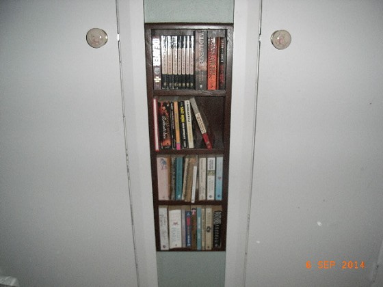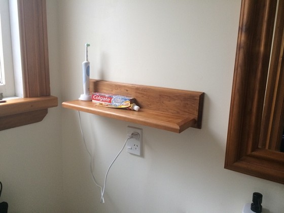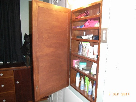 I plan to make a hinged mirror in the bathroom, that will hinge down and allow for some hidden shelves and storage space inside that wall space.