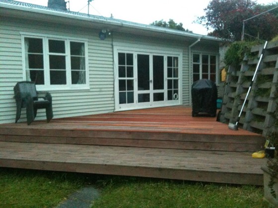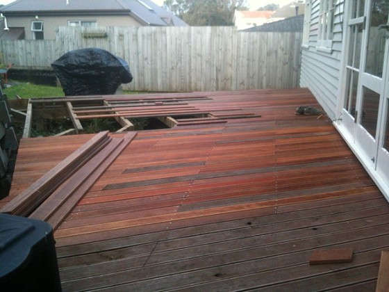 Bung: How old is the deck? I'm surprised you have a lot of rot if it's hardwood. I have one that is probably older and some problem boards are splitting and splintering but not rotting. Your joist spacing looks on the wide side.