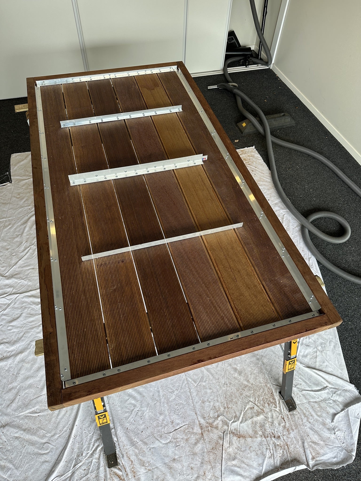 Thanks. It was tricky to design it with no visible fixings yet strong enough underneath to fix the bow between adjacent boards (to result in a perfectly flat top) - while also creating precise gaps between the boards and around the border. Fortunately, although all the boards were a bit bowed along their lengths, they were very straight.
