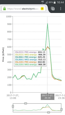As you can see - virtually no north transfer. (North is the normal transfer mode). So there is still a SI shortage. And due to limits on south transfer, Which mean that prices for power sent south start getting expensive for more than 500MW approx south transfer. This means there is still pain for those on Flick in the SI. As even if prices get really cheap in the north, they can't fully flow through to the south.