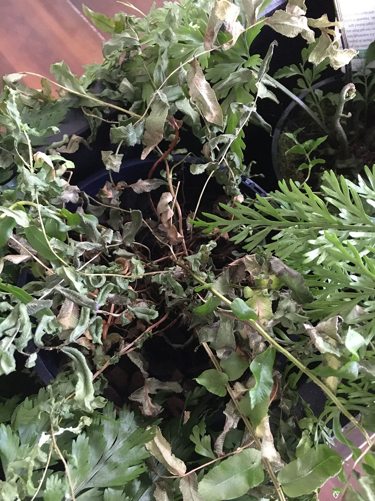 Hi, we are newbie garden people and check these plants every morning. If the soil is moist we leave then, if it is dry, we give them water. We have bought many kinds from the garden stores but as you can see they are all dying. We don't know if we are under or over watering or what is going on. The room gets a lot of light and we have even been giving them plant food. They all end up looking like the attached and dying. Could misting them help?