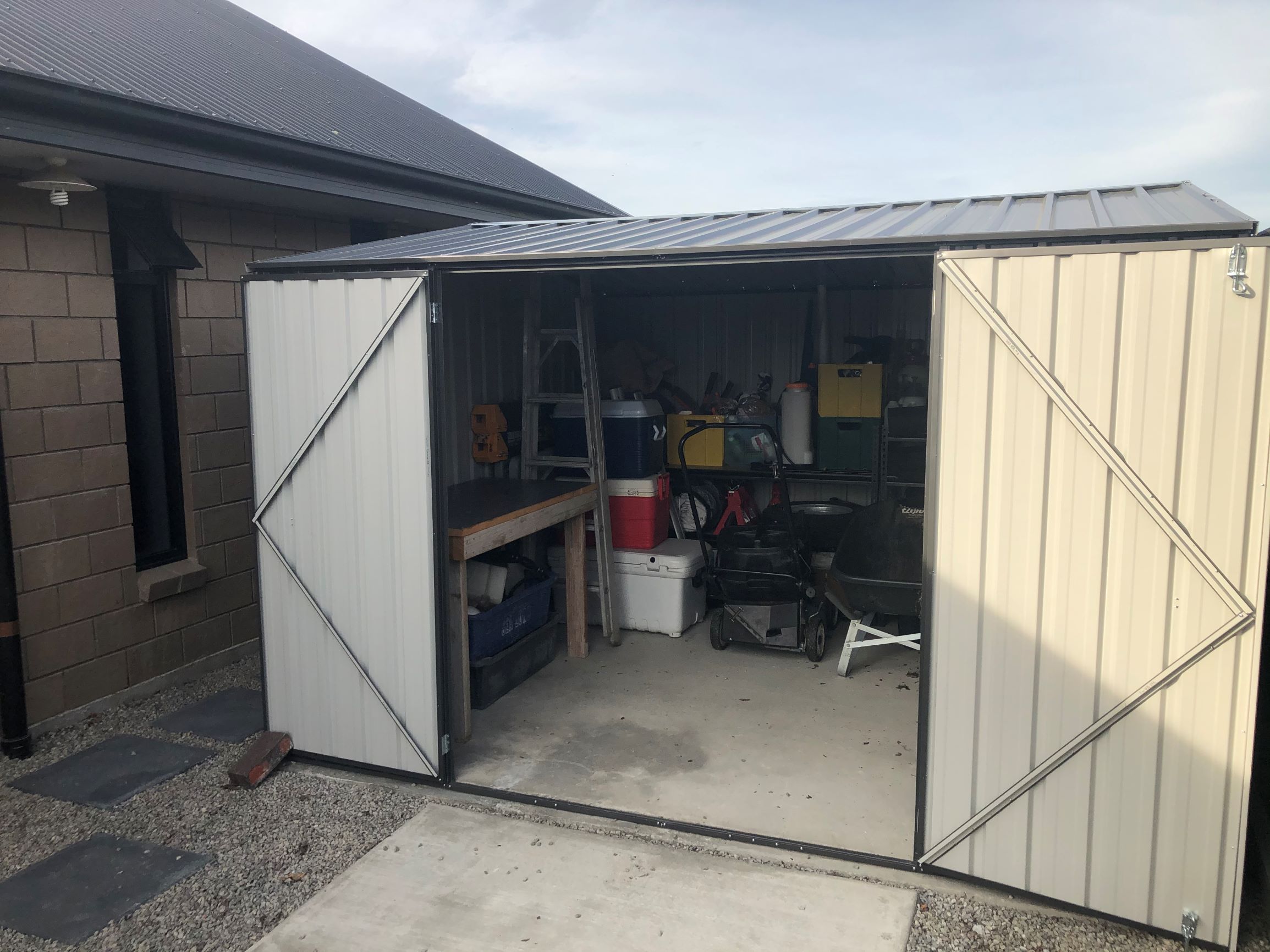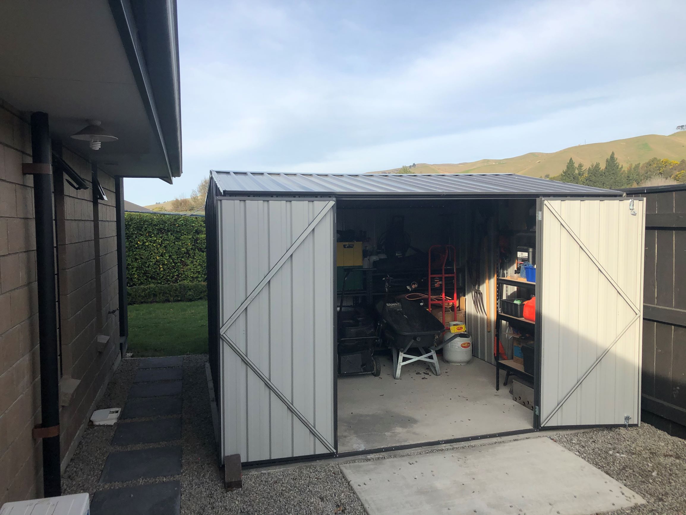 A few photos below. It's an ABSCO shed 3m x 3m. Bought from Bunnings. The ABSCO sheds have some clever design aspects. The framing is steel as well as the panel. There is lot of snapping together or parts rather than using fastenings (there are some fastenings as well). It's quite a clever design really. Te materials are quite light but it's very rigid once all together