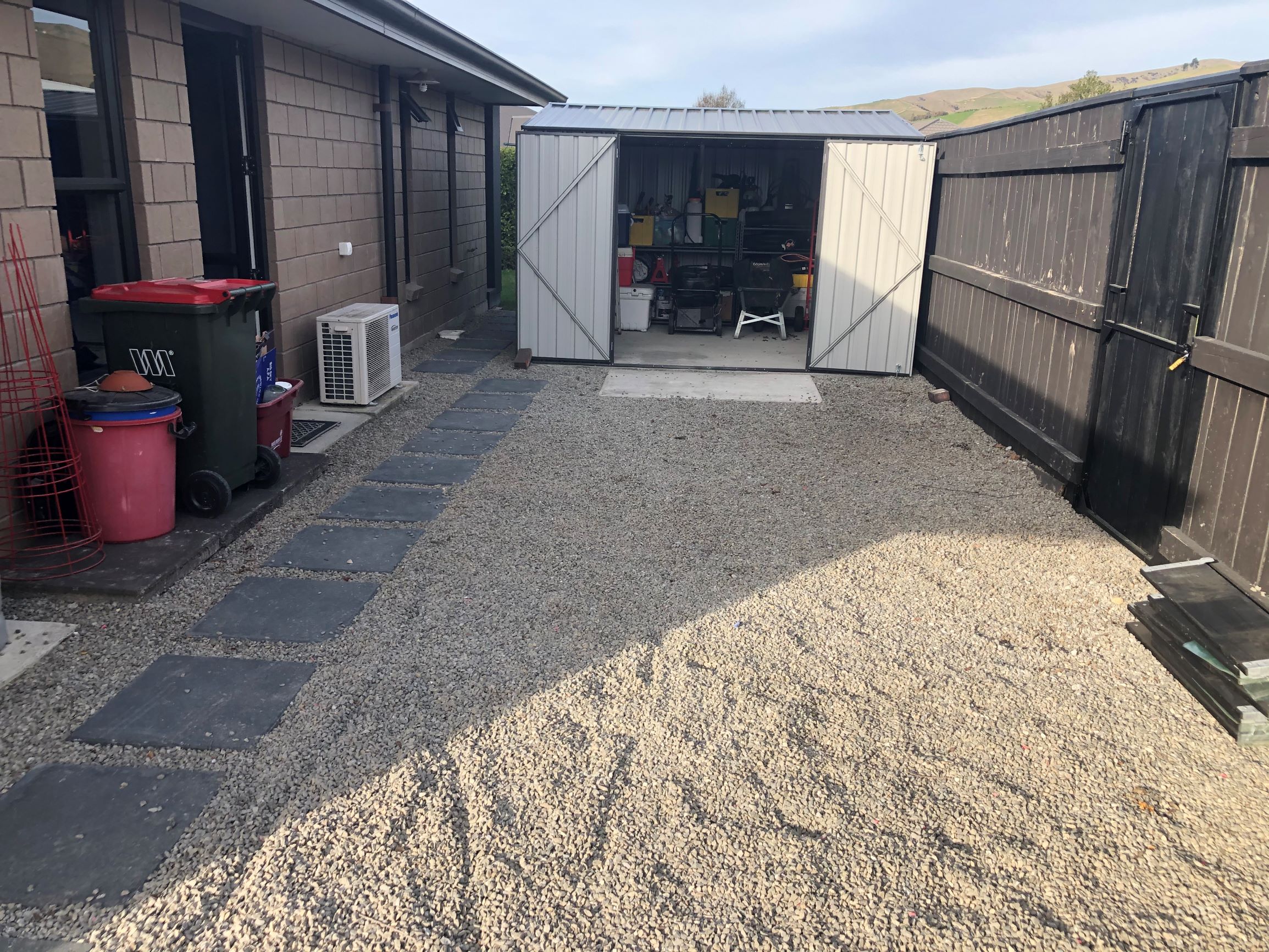 BTW this is the utility area at the south side of the house, so proximity of the shed to the house isn't an issue.
