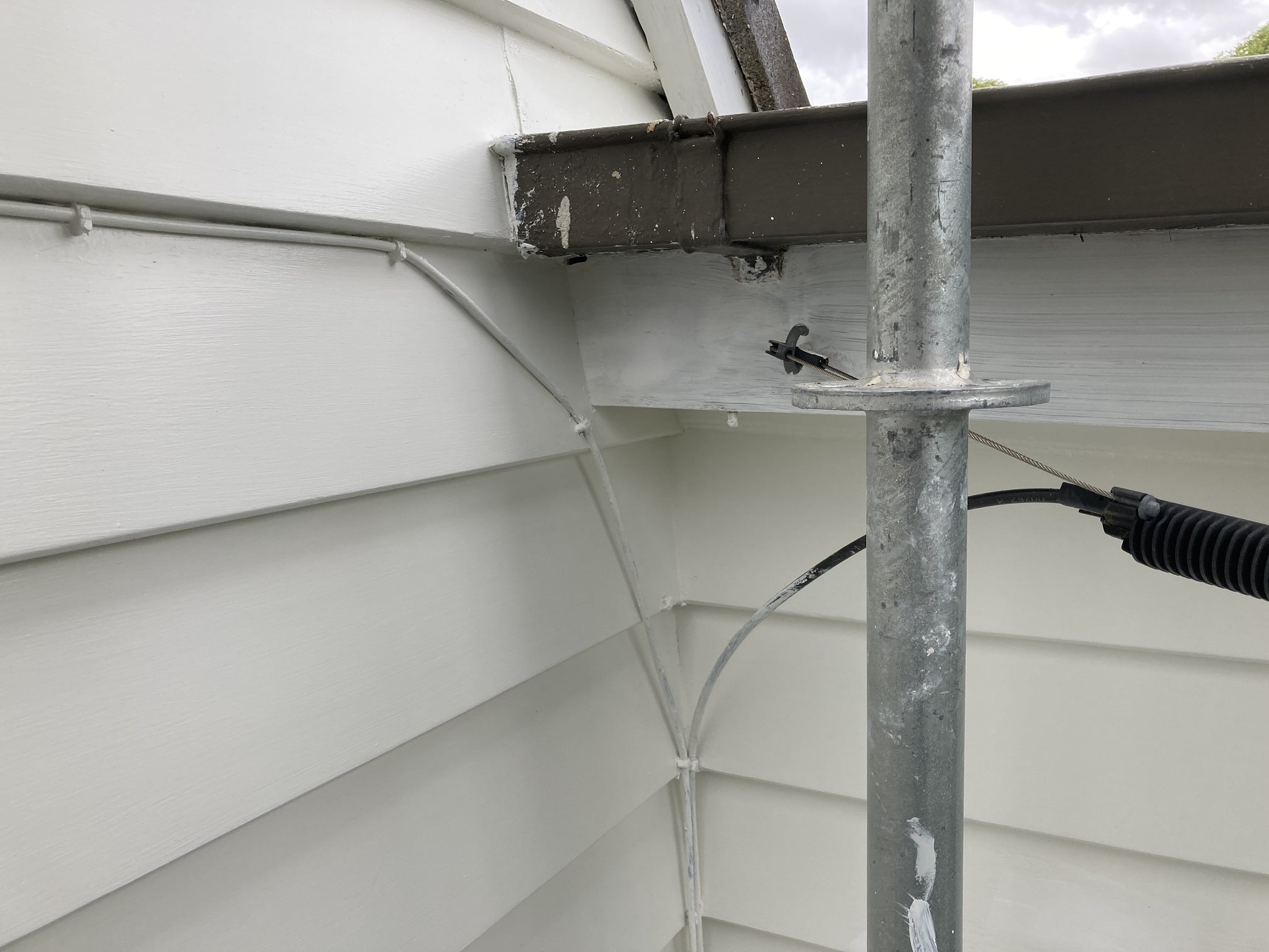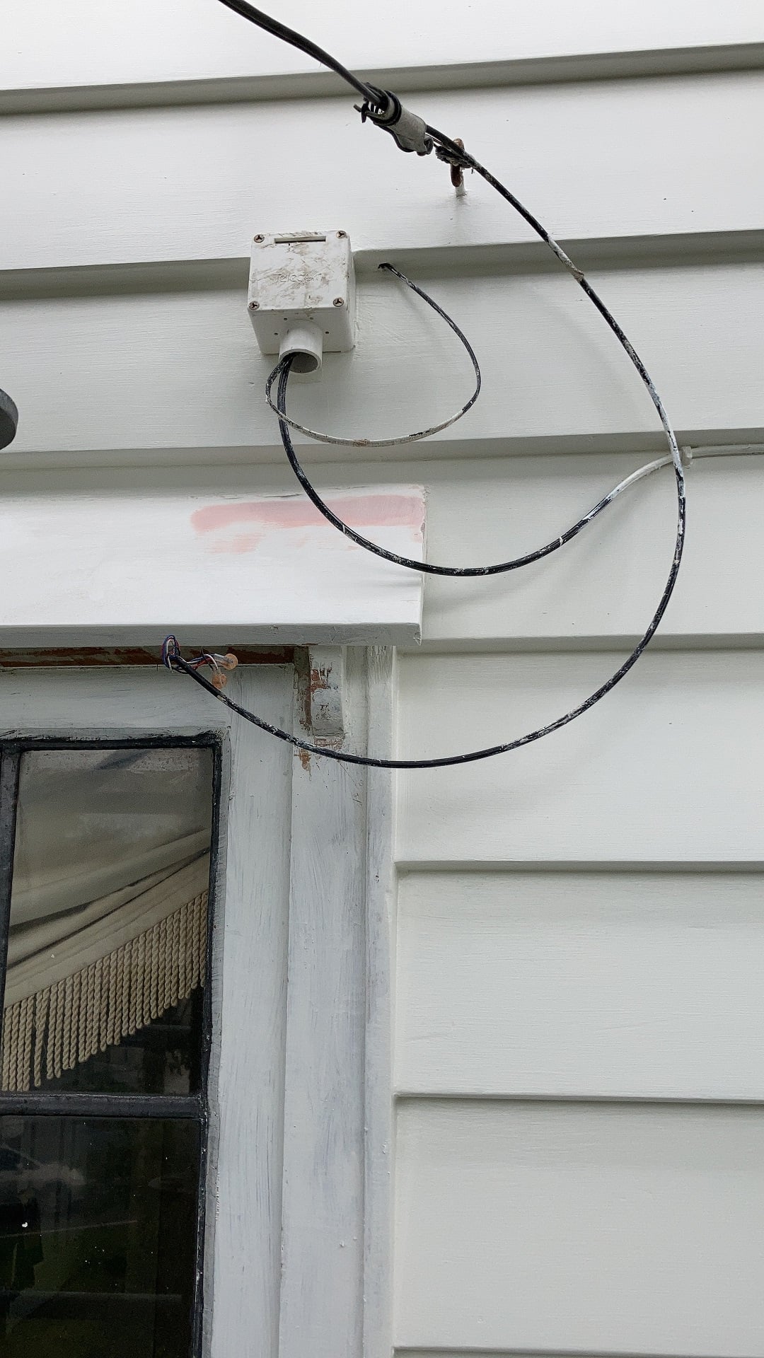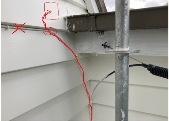 It comes in via overhead then shoots down a conduit to an entry point at the bottom of the house. The existing copper also come in via over head and seems to connect to the the house telephone circuits up in my ceiling.
