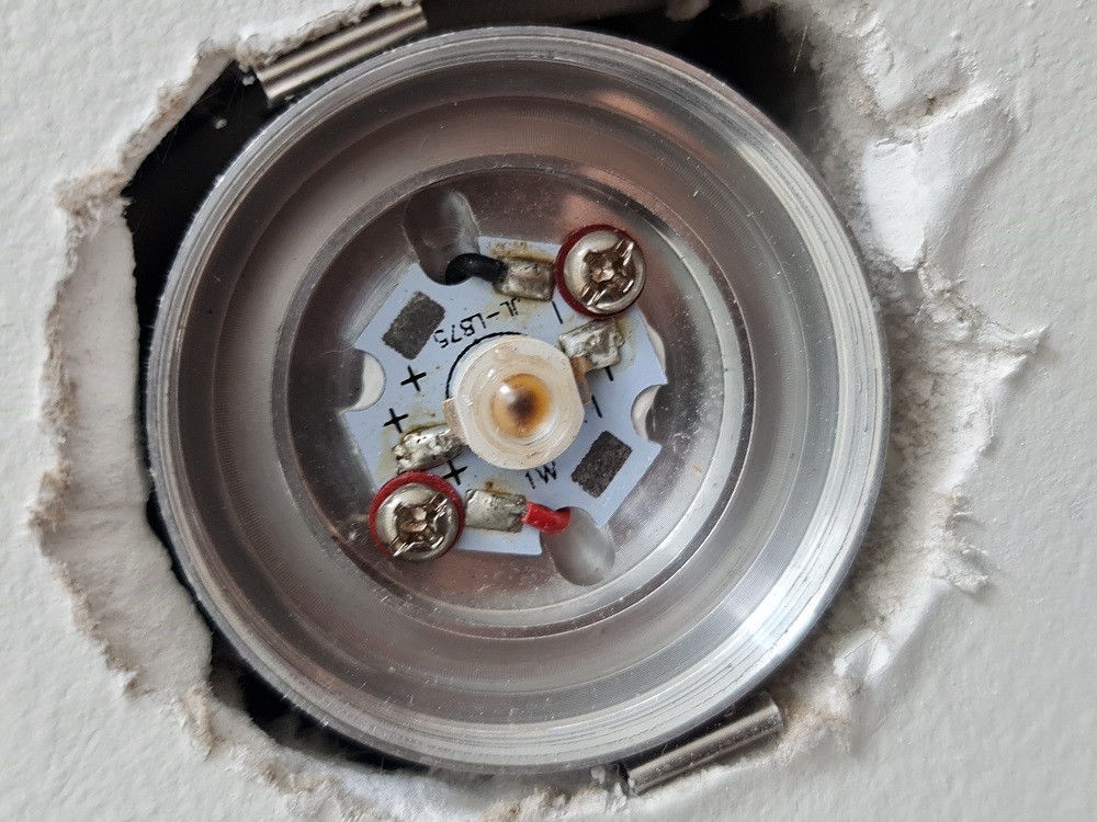 Morning all, after a little bit of help identifying the make/model of my stairwell LEDs, of which one has begun to fail. Firstly, I have checked the output voltage of the LED driver, and all is in check here at recommended output, so it has to be the LED at fault, and looking at the PCB, I'm not overly surprised.