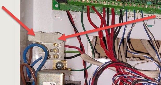 In the past 15mins, our ancient (and never used by us because no-one knows the PIN, and two alarm specialist friends have tried resetting the unit with no luck) Paradox alarm control panel has started emitting a low but constant tone.