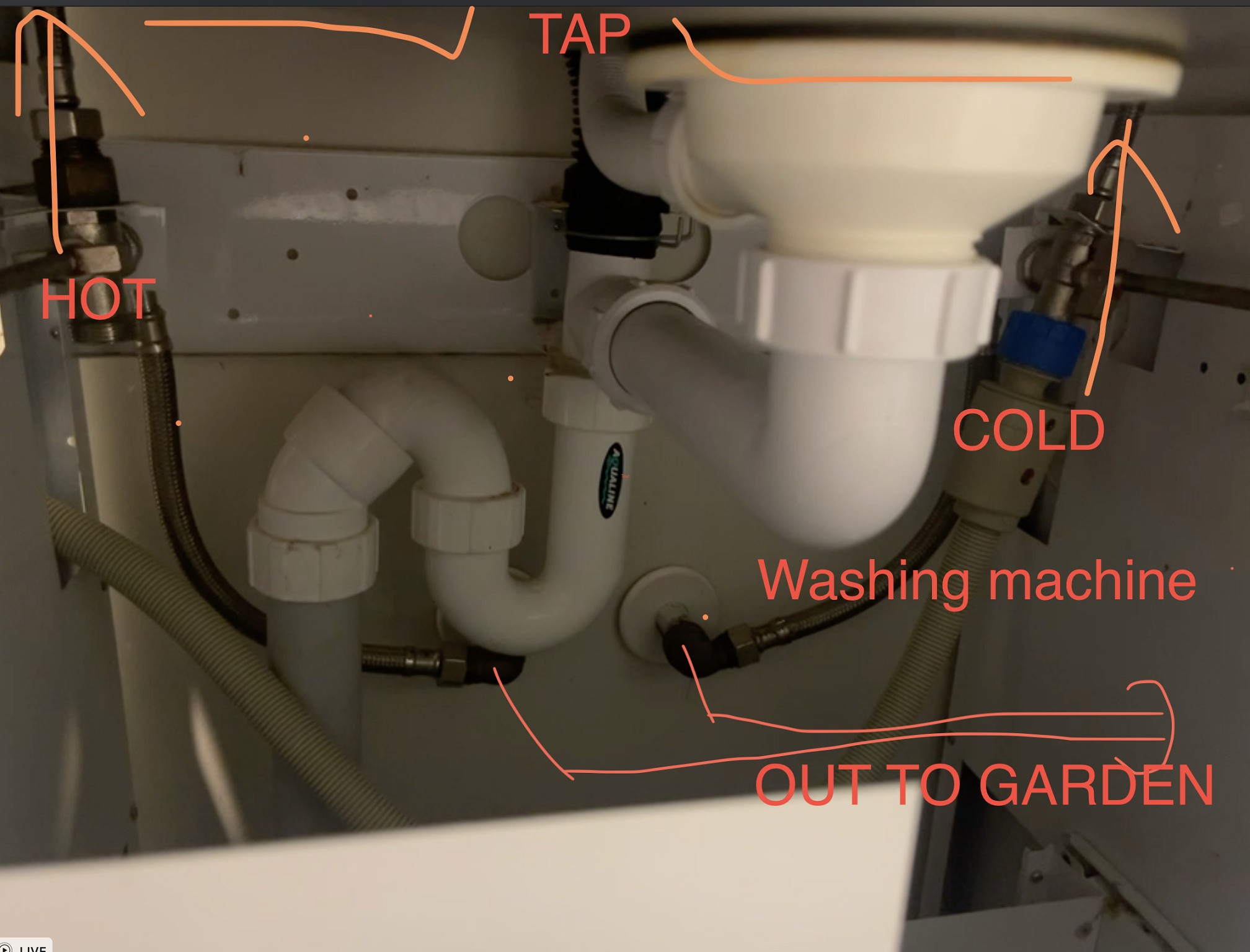 There's a garage-sink with hot water right next to the wall needing the hot outdoor shower and we were wondering if we can attach a three-way water to the tap (Photo below), drill a hole (fill it afterwards) and then fun the pipe outside for an outdoor shower.
