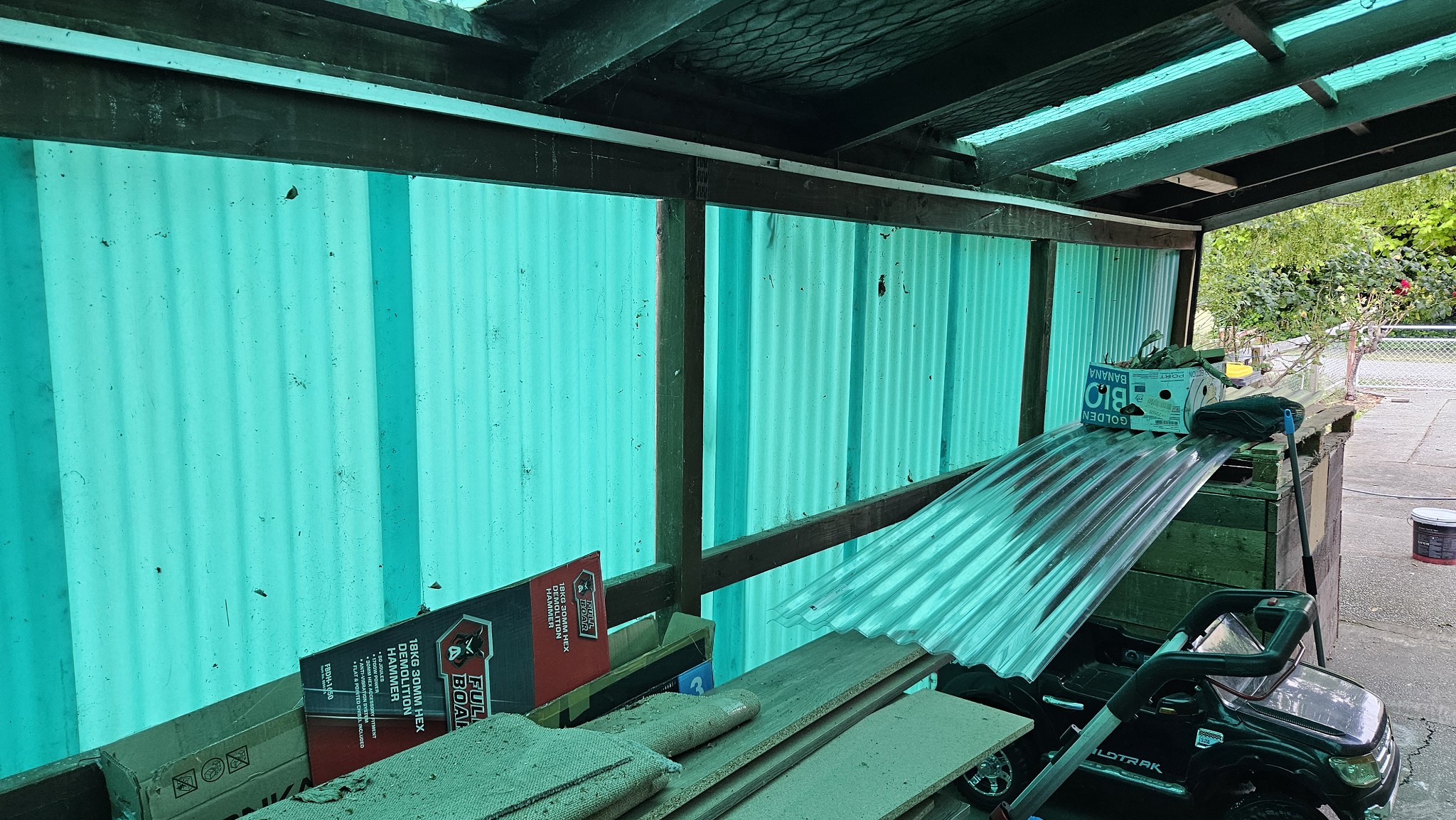 I am replacing some roof sheeting and then I would like to make our carport watertight for a bit of a mudroom before entering the house.
