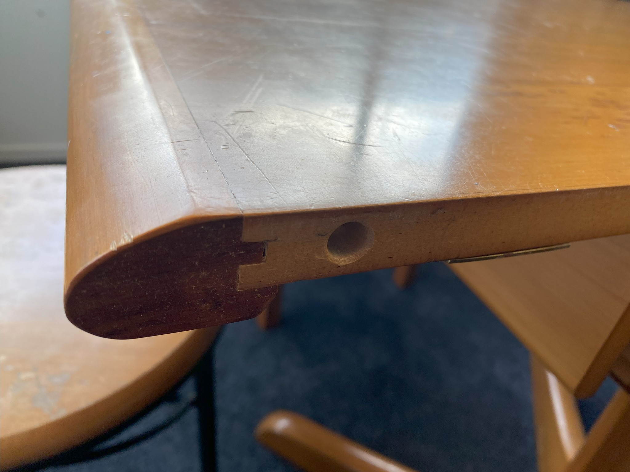 Last year I found a pretty solid dining table that was free to a good home. It had some marks and scuffs on the surface but it was in pretty good shape otherwise. I figured it would be a reasonably straightforward exercise to sand it back and then re-varnish it to make it look nice again.