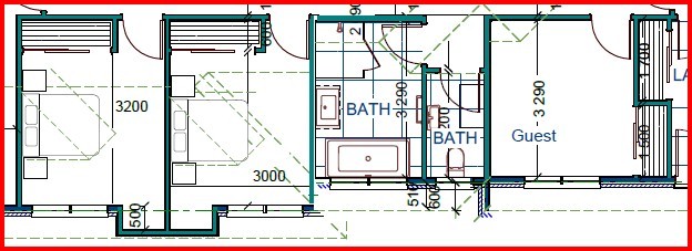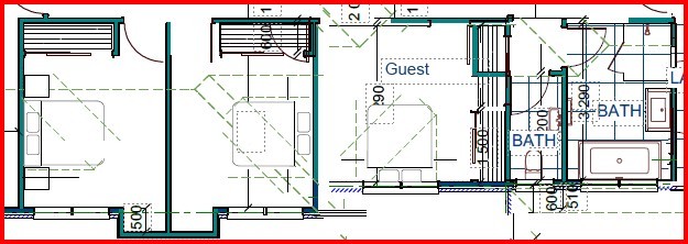 2) An alternative idea was to move the Guest bed next to other bedrooms. That way the bed / desk would work better in Bed 2, and no need to worry about shower/toilet noise for any rooms (wc/bath can be swapped). But the toilet is a bit further away from bedrooms. (We dont have a lot of guests, so most of time would be toy room, exercise bike etc)
