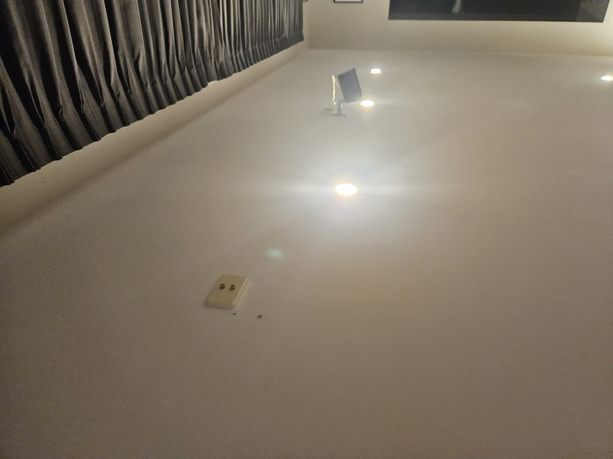 He ended up mucking up the locations of the four wall plates in the ceiling see red circles in below image. the location is about 5 feet from where the blindfold door are shown in the below plans