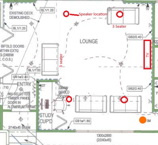 Many years ago our house was renovated and my father at the wanted to do a surround sound 5.1 setup. I know the placement is not correct.