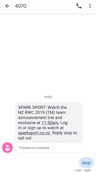 Interested to know how did Spark Sport find my mobile number to spam this message... I've checked and there's no phone number field in the profile page (also I don't have an active subscription anyway):