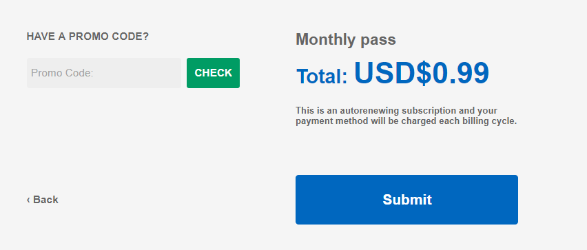 Has anybody signed up recently and re-confirmed pricing? I have an annual pass expiring in October so looking at renewing it about then. Went to check out pricing today and it comes up with a monthly price of $0.99 USD...