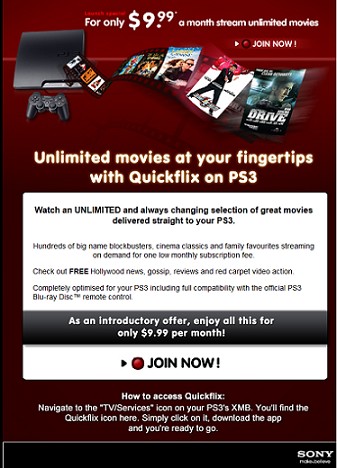 BraaiGuy: Just received an email from playstation advertising quickflix, and how to install it on PS3