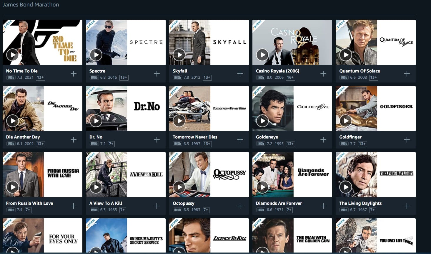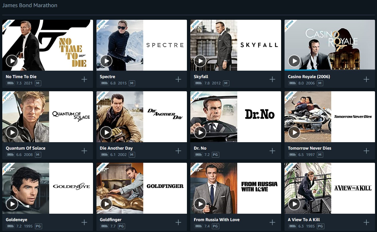 Yeah, I can see that but at least for me it's neither chronological (as per image below, Dr No following Die Another Day?!) nor in a watchable order - I can understand why, from a promotional point of view, they'd want newest at the top, but if one is undertaking a 'marathon' viewing I doubt anyone would watch in reverse order!
