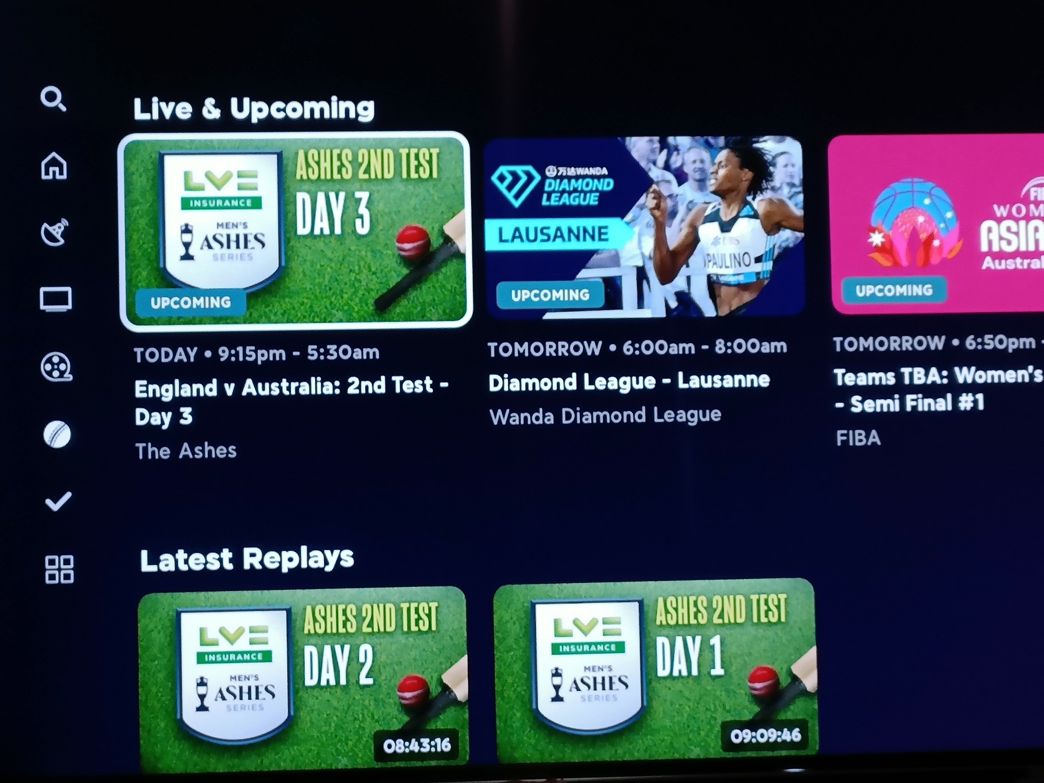 Sport has just shown up in my TVNZ+ app on the Sont TV
