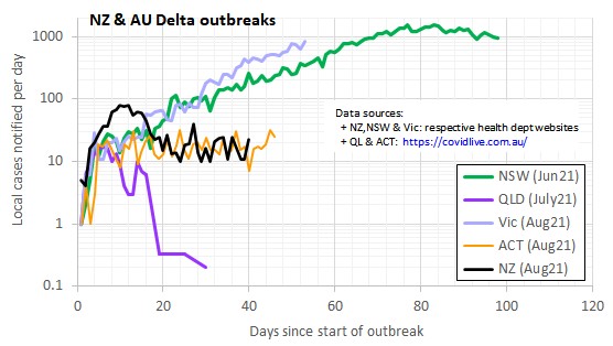 NZ covid cases numbers now appear to be flatlining rather than in exponential decay. Currently very similar to the trend in ACT, another jurisdiction that locked down after a single case.