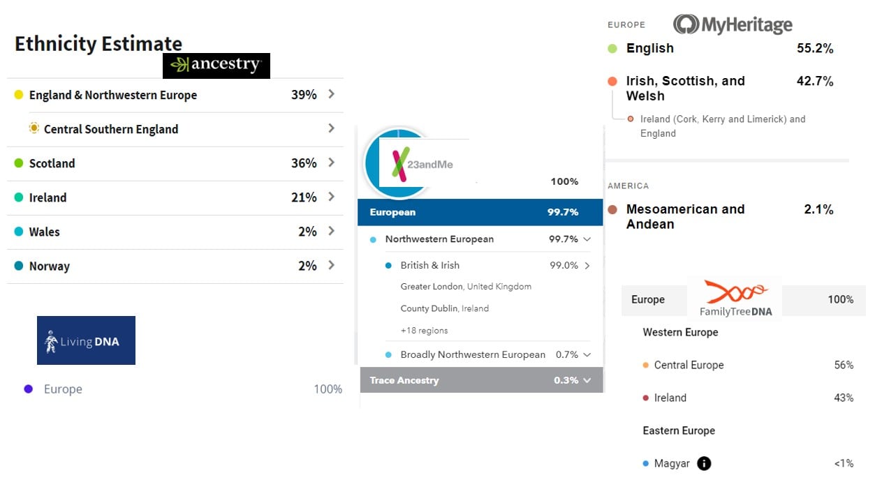 Then MyHeritage, then FamilyTreeDNA, then 23andMe, then LivingDNA.