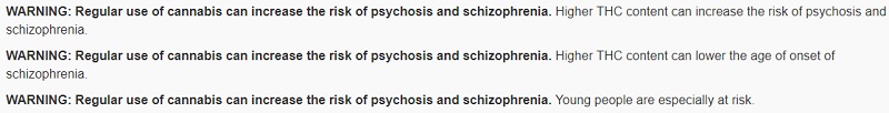 Health Canada found the correlations strong enough that about a quarter of the mandated warning messages on retailed Cannabis are schizophrenia related.