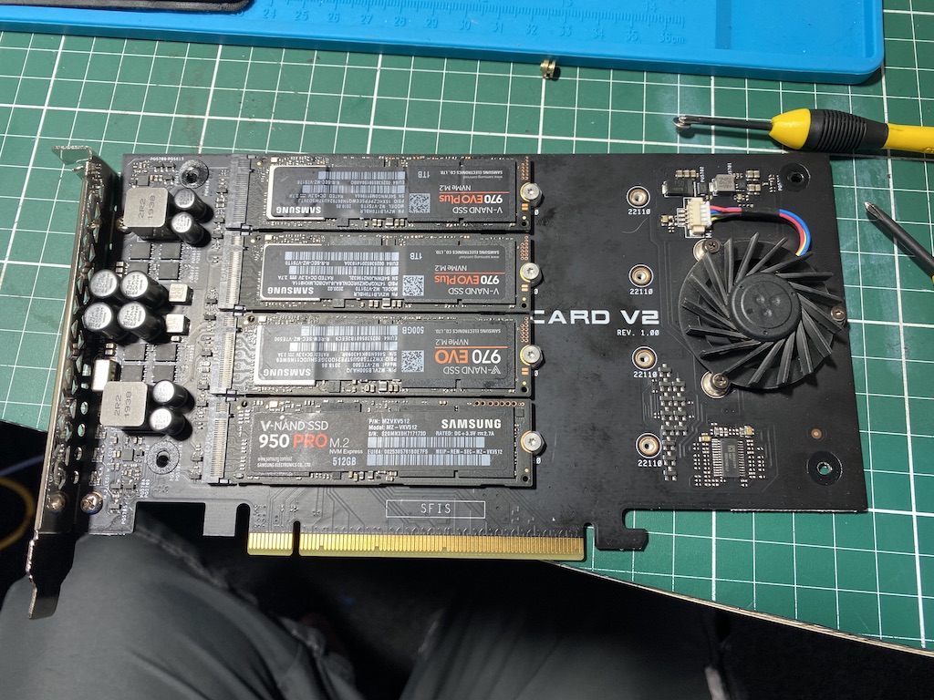 I am just having fun playing around at home, Its been so long since I have had a break. Trying to keep out from under the wife's feet so have retreated to my tech play room. Order of the day was try and get working a 4 x nvme card working for a cache drive for my unraid server.