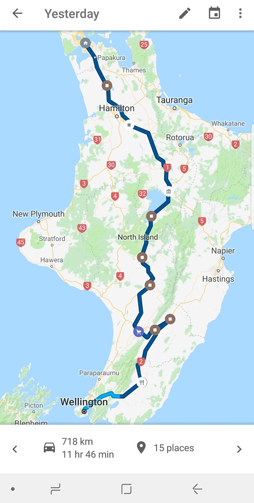 The Monday trip was conventional - down SH1 - except I chose to go Auckland -> Te Awamutu > Taupo because SH32 is much less busy and I have more scope to drive my own drive on that longer leg (130km...and uphill by over 500 metres).