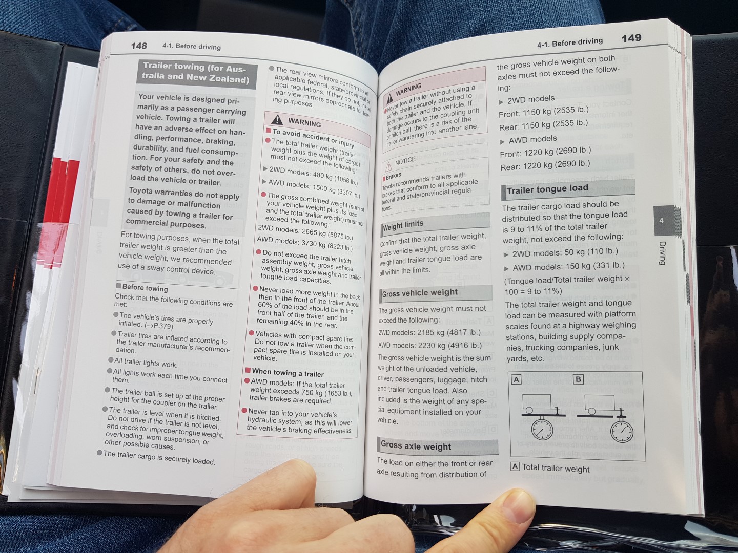 Seems a kiwi tradition to buy a big car for the annual summer holiday when most of the time something smaller would do. It seems my Corolla won't tow much, 450kg unbraked and 1300kg braked. Still mine is the only one I've seen with a tow bar. And it's a 2" hitch rack of all things.