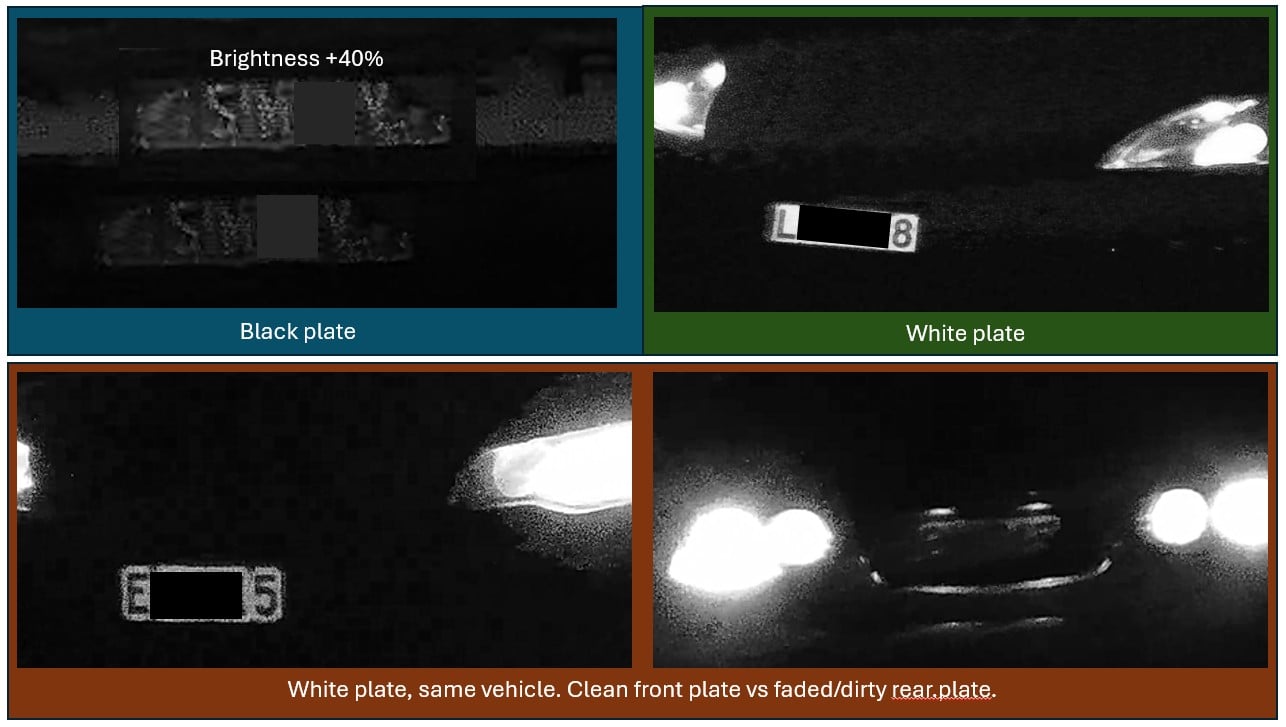 I'm fine to have a black plate option, but lets get rid of the color change bit. Optimize for human reading. It is hardly like black background plates are a new thing for camera's to recognize: