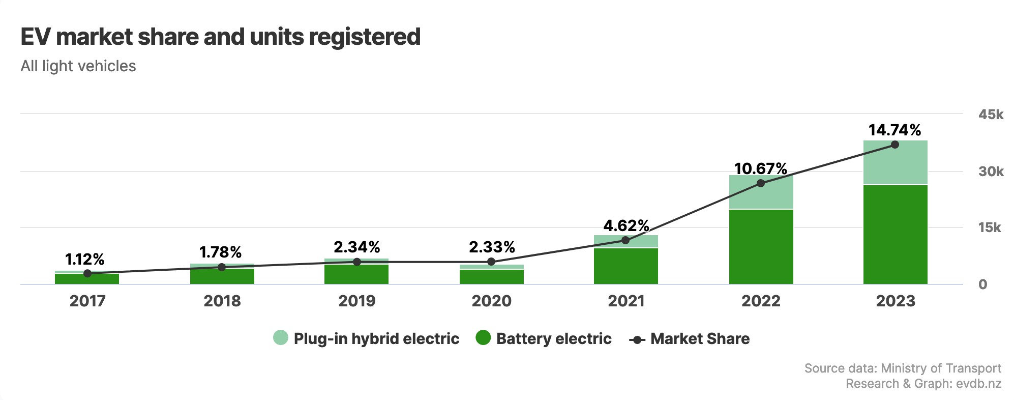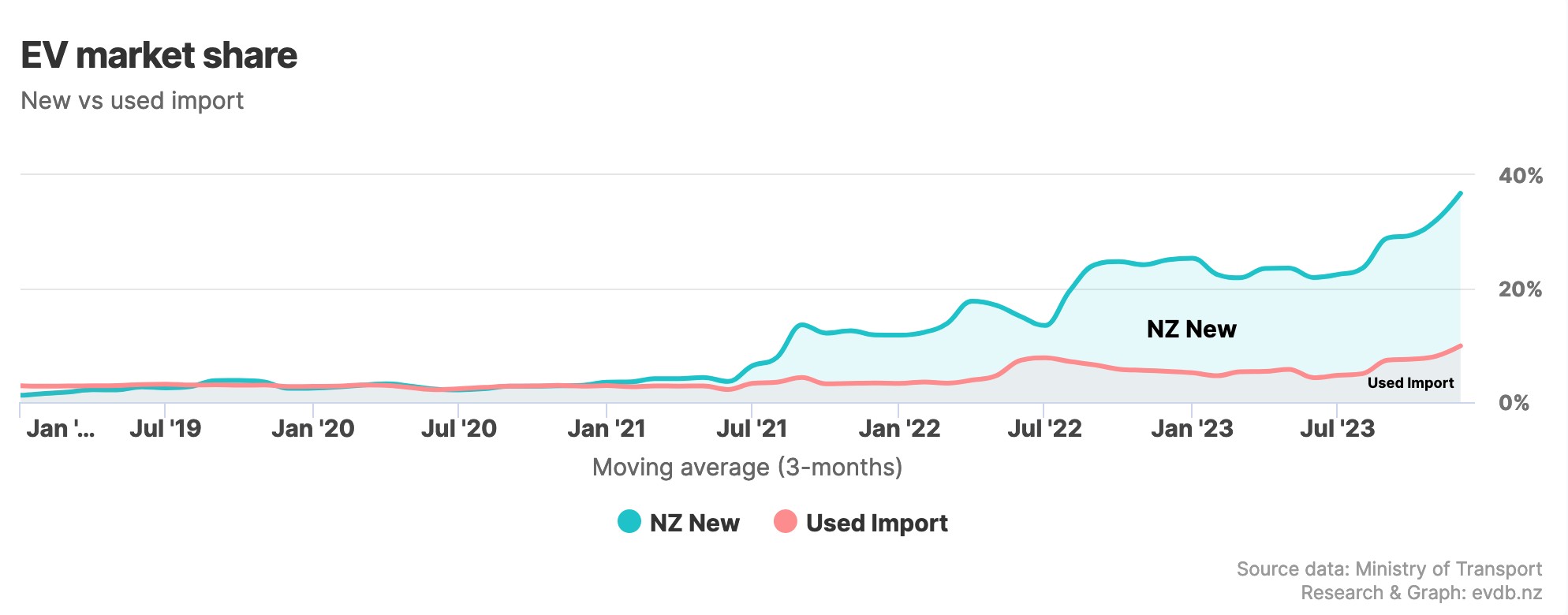Thanks for the data from https://evdb.nz/ev-percentage-nz