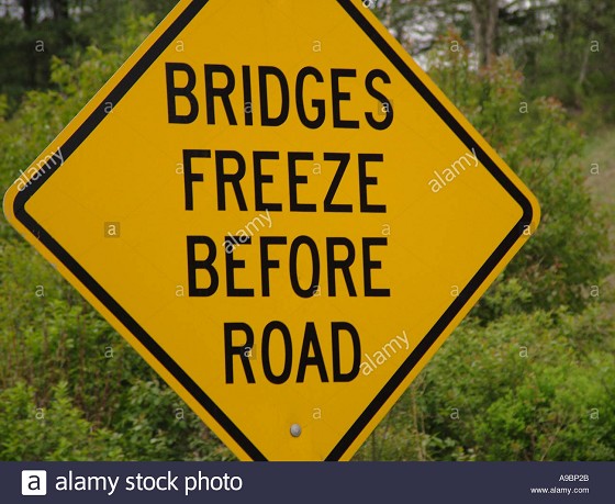 Bridges suck in winter. They cool down and warm up faster and they can also hold water.
