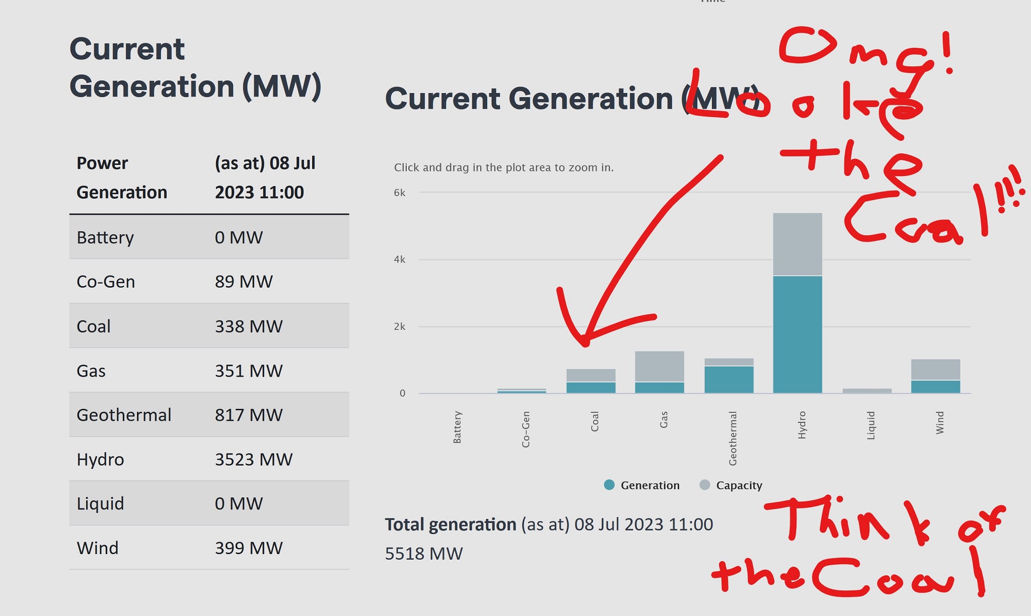 Hi, I agree with Obriak's comment, you seem to be of an odd understanding as to how much coal actually powers NZ. Of recent times (infact for some time) its use has been minimal except in times of trouble with other major supplies (ie low lakes).