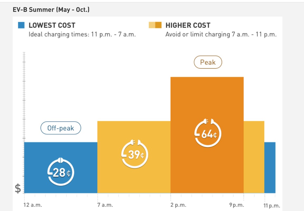 A quick check of PGE rates for EV's shows this summer rate table. That is a lot more than I pay on Genesis which is 14c (or about US7c) per kWh from 9am to 7am.
