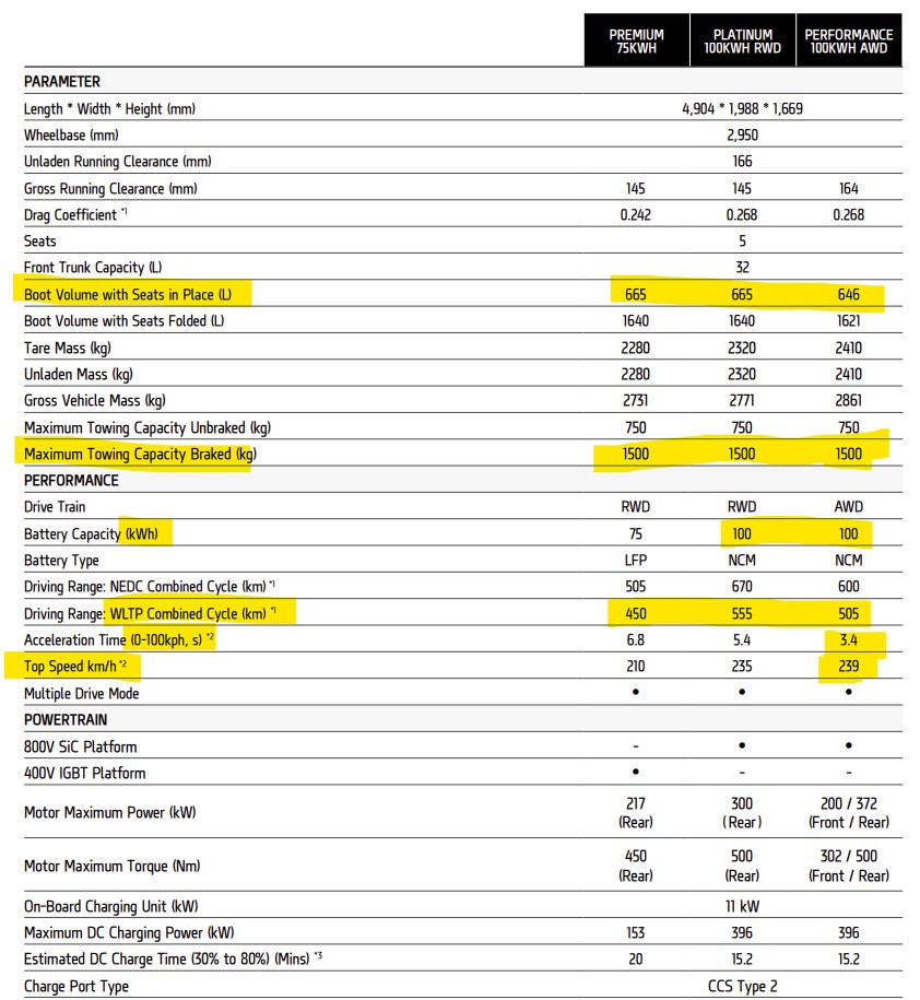 505 km Rated range & fast charging peaking at 396 kW are both a decent step up on MG's current performance offing, the MG4 X-power (400 km WLTP & 140 kW Max fast charging)