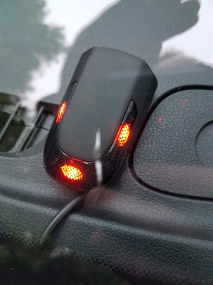 Unidentified Flashing Object: My recently imported 2016 JDM Leaf has a small gadget mounted on the dash close to the windscreen, behind the passenger-side wiper. Visible through the screen, it has three red lights that flash intermittently when the vehicle is garaged and turned off. Please can anyone here explain what this device is, its purpose, and whether it's advisable to remove it (and how) or leave it alone?