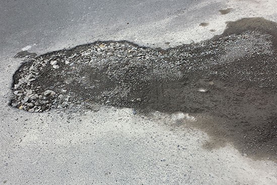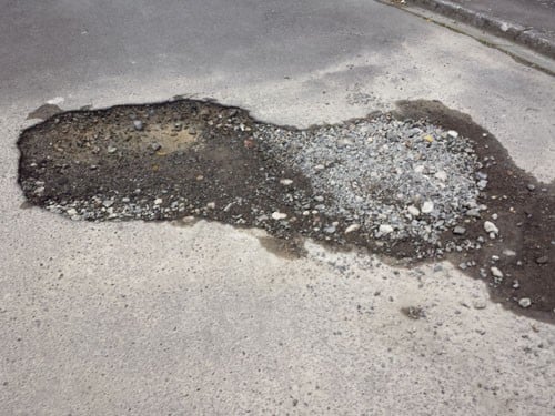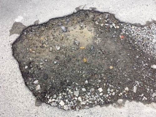 This is the pothole on the entrance. It's about a meter wide and around 10cm deep.