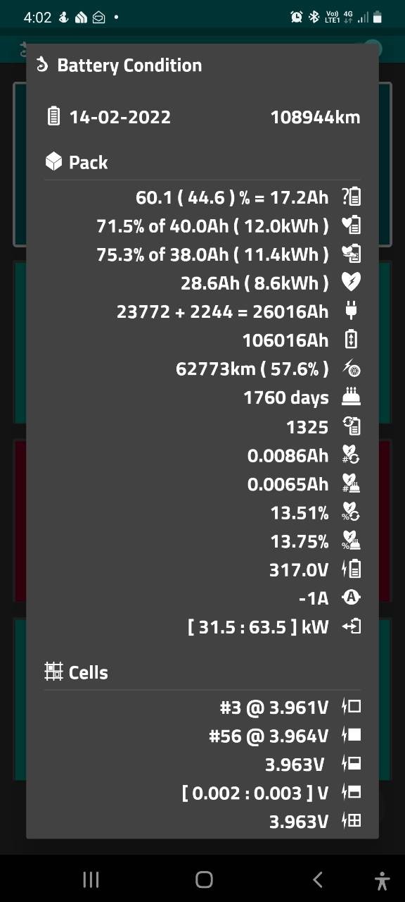 And 8.5kwh remaining with a SOH of 75%