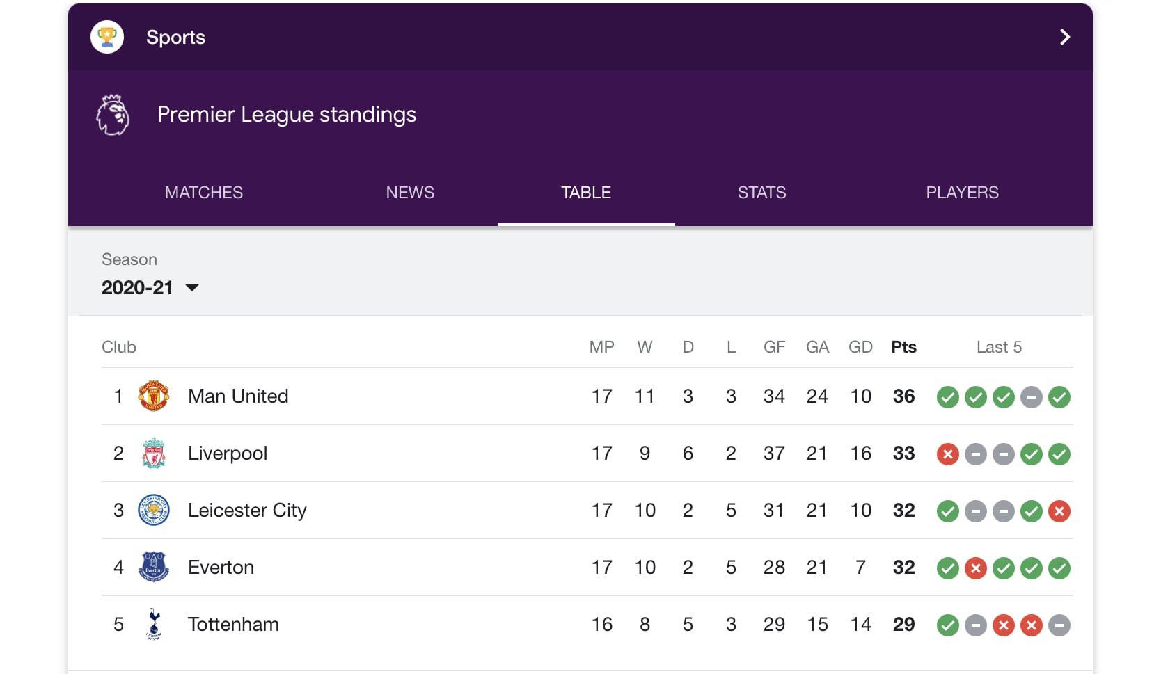 As of 40min ago, Manchester United has returned to the top of the English Premier League. Oh yes!! Equal top with LVP who have superior goal difference currently. Their last 5 matches are DDWWD for 9 points, United’s WWDWW earned them 13.