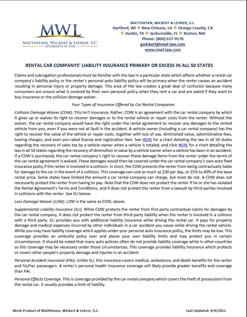 I believe Car Rental Insurance covers the excess that could be charged by the rental car company in the event of an accident.